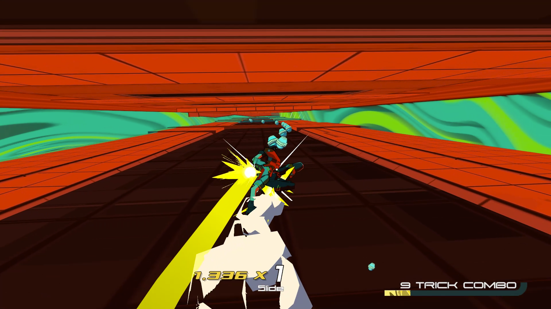 Losing momentum and bonking rails are some of the few blemishes the original Jet Set Radio games had, but Cyberfunk eliminates this with several quality-of-life changes. The player can "double jump" after every air-to-air interaction, including wall rides. That, combined with a boost that refills as the player increases their combo, makes it easier to travel great distances. Finally, reaching the dreaded "end-of-the-line" of a rail, which leads to the inevitable bonk, is remedied by the player automatically rebounding off a rail in the opposite direction. These are subtle improvements to the original JSR formula but are much appreciated in a modern sense.